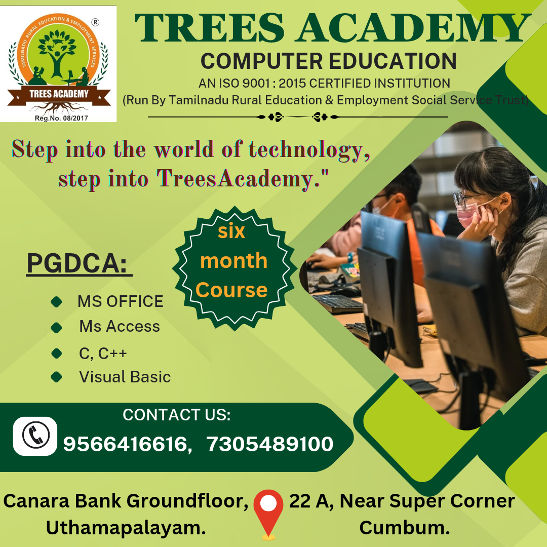 TREES Academy is a trusted learning centre dedicated to empowering students with practical skills and career-focused education. We offer affordable and quality training in various fields to help learners build a strong future.